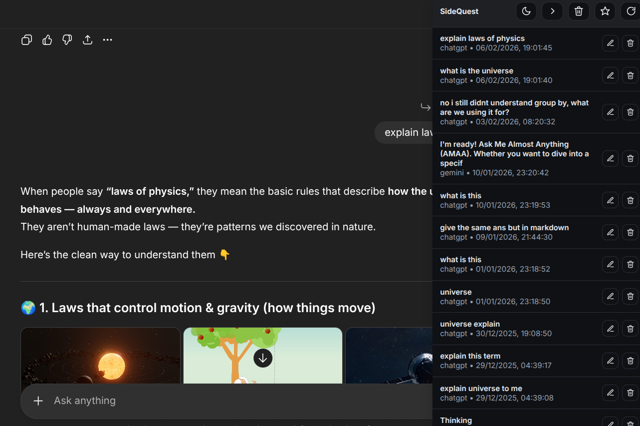 Chrome extension. Enhance your chatgpt/gemini/claude experience with bookmarks, structured localStorage, and side view for queries